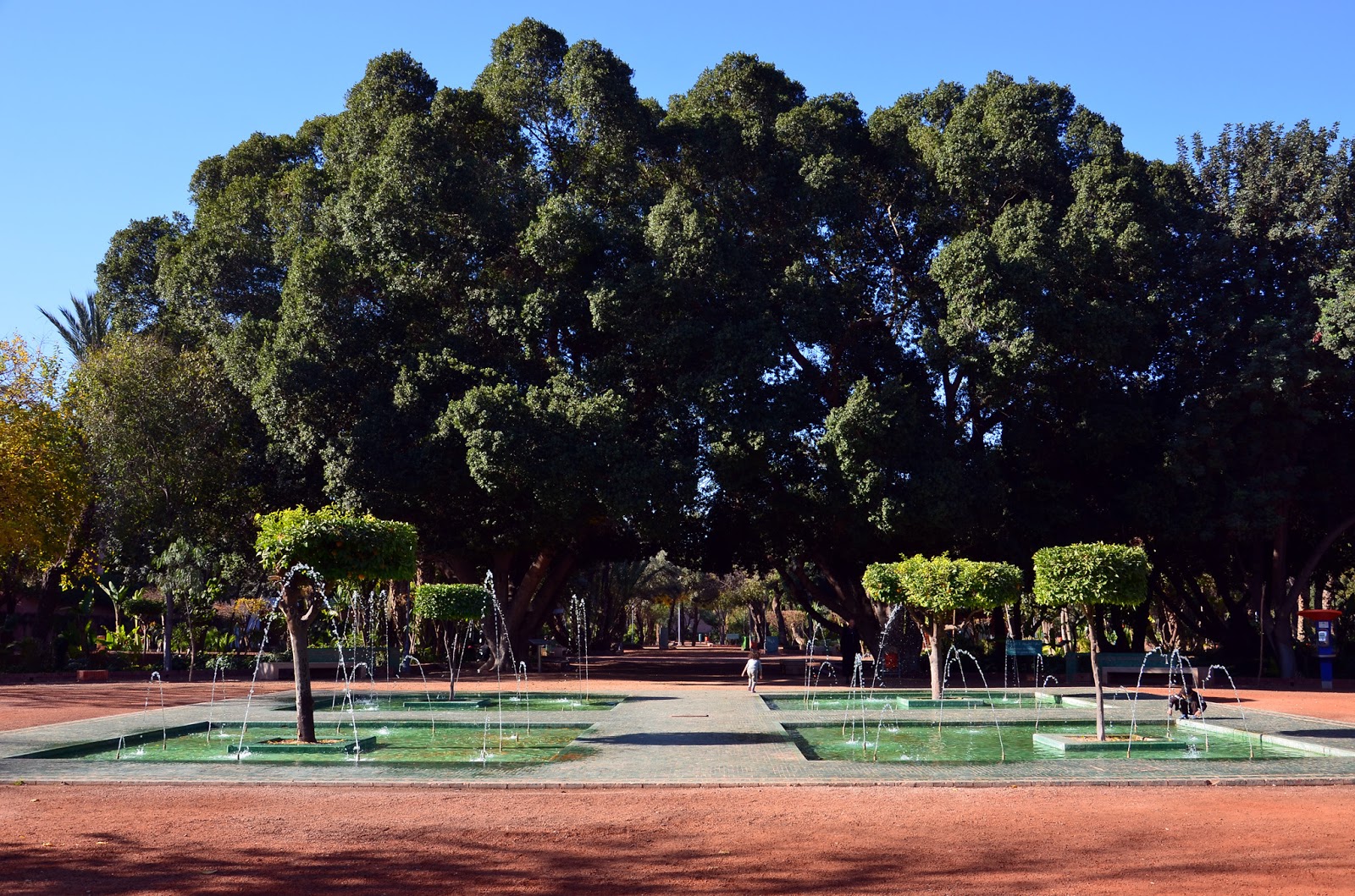 Architect: Karim El Achak, landscape architect: Jean-Charles Mazet, 2003-5. Historic gardens, quite close to the Koutoubia Mosque, which have been renovated and restored. The 'Cyber' part of the park's new name must be to do with the free Internet terminals that are dotted about, and the funding by various IT companies including Maroc Telecom. Arset El Bilk, Marrakech, Morocco.