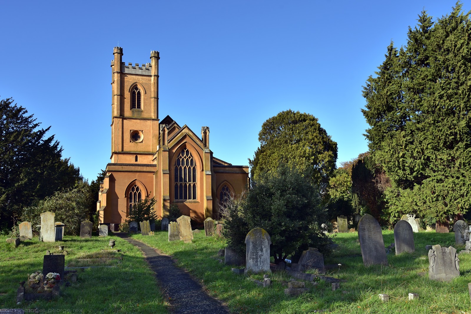 Parish Church of St Peter and St Paul, Mitcham. Architect: George Smith, 1822, in the Perpendicular Gothic-Revival style. Master-Builder: John Chart. Channelled 'Roman' cement render with some Bath stone dressings. Grade II*-listed. London Borough of Merton.